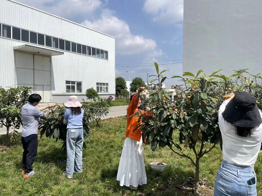 南京华天精细化工研究所有限公司开展“五一”国际劳动节系列活动时间:2024-05-11 为丰富职工精神文化生活,进一步打造绿色化工园区,树立崇尚劳动、团结和谐的文明风尚,值此第134个“五一”国际劳动节到来之际,省精化院开展了“五一”国际劳动节系列活动。 春日里的采摘乐章 正值院区枇杷成熟时节,金灿灿的枇杷挂在枝头,在阳光的照耀下,显得更加香甜诱人。省精化院组织广大职工开展采摘枇杷活动。大家拿着剪子等工具,穿梭于果树之间,将一颗又一颗的果实摘下,一起品尝果实的鲜甜,享受劳动的快乐,让人有一种“枇杷金果渐欲迷人眼”的美妙感受。